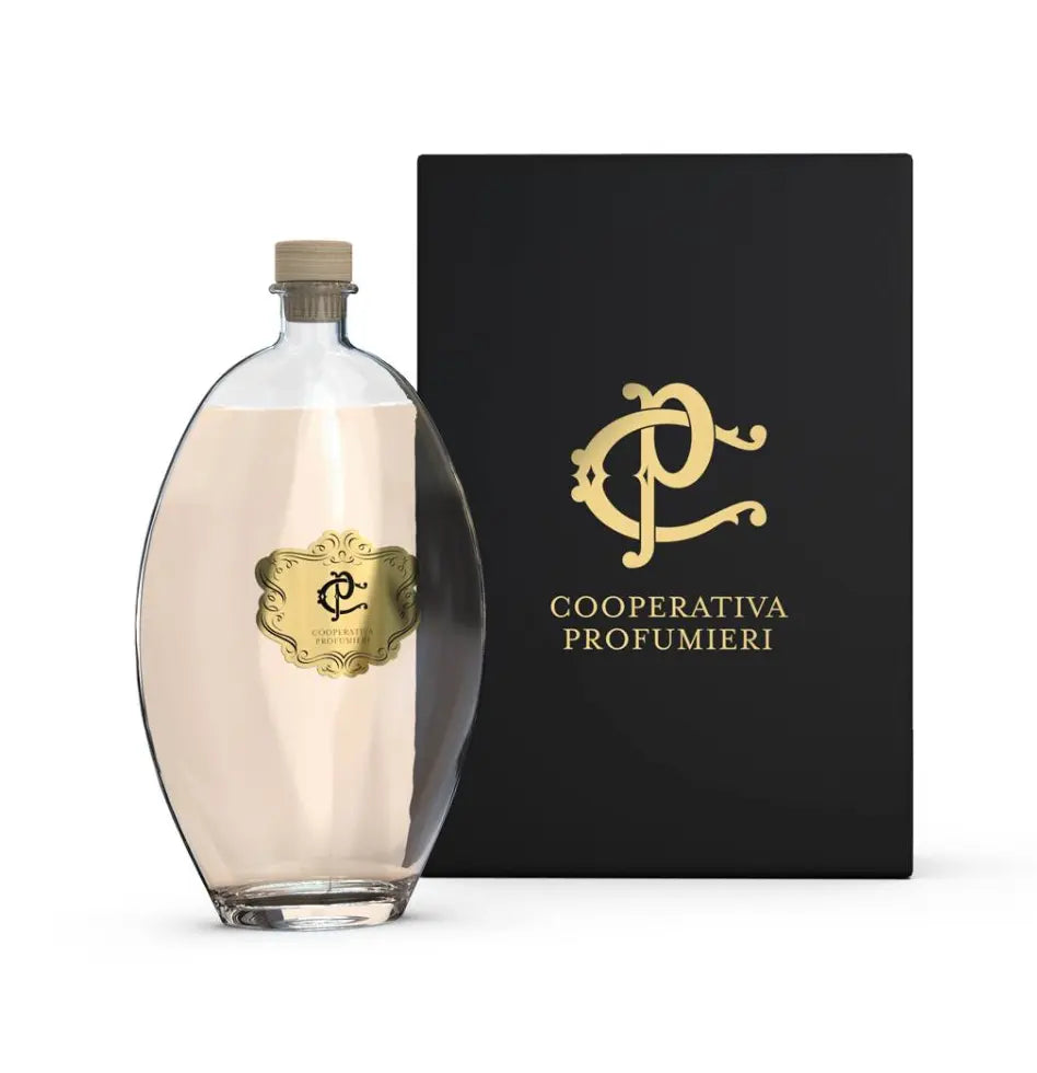 Les diffuseurs de la « Cooperativa Profumieri » se caractérisent par leur design raffiné et l’utilisation de bâtonnets en bois naturel. Ce choix de matériaux permet une intégration élégante dans tout environnement tout en garantissant une diffusion efficace du parfum. L’essence parfumée est contenue dans un emballage sophistiqué et chic. Les bâtonnets, une fois plongés dans le parfum, agissent comme des canaux capillaires, absorbant le liquide et le transportant progressivement vers le haut. Cette méthode assure une libération uniforme et constante du parfum, enveloppant votre maison d'une aura rafraîchissante et pure.