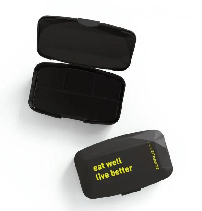 En résumé, la Supplebox de poche est la solution idéale pour transporter et organiser vos comprimés, capsules et sticks de compléments alimentaires. Avec ses cinq compartiments internes, sa taille compacte de 12,5 x 2,5 x 7,5 cm et sa couleur noir transparent, elle offre une gestion pratique et efficace de votre consommation quotidienne, adaptée à une utilisation mobile.