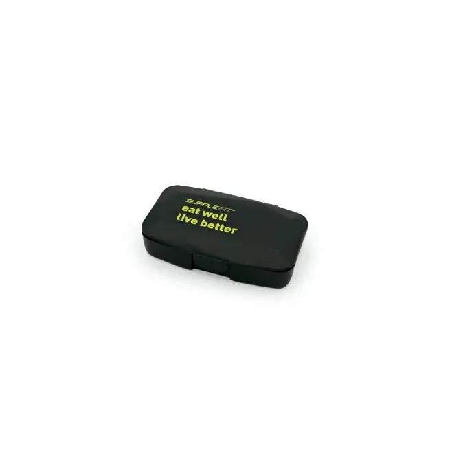 La Supplebox de poche est conçue pour conserver efficacement les comprimés, les capsules et les sticks grâce à ses cinq compartiments internes.